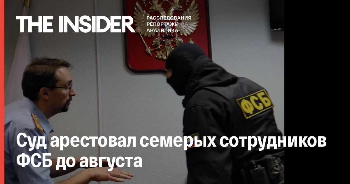 Московский военный гарнизонный суд арестовал семерых сотрудников ФСБ до августа. Двум из них назначена мера пресечения в виде домашнего ареста. Об этом сообщает «Интерфакс» со ссылкой на представителя суда.