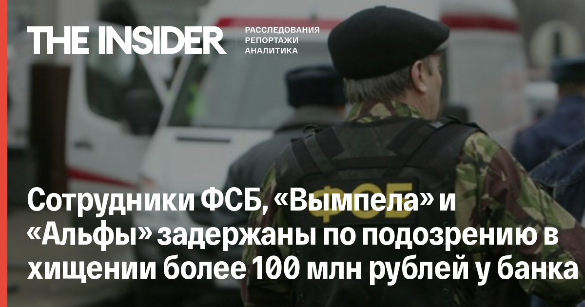 Сотрудники ФСБ, «Вымпела» и «Альфы» задержаны по подозрению в хищении более 100 млн рублей у банка