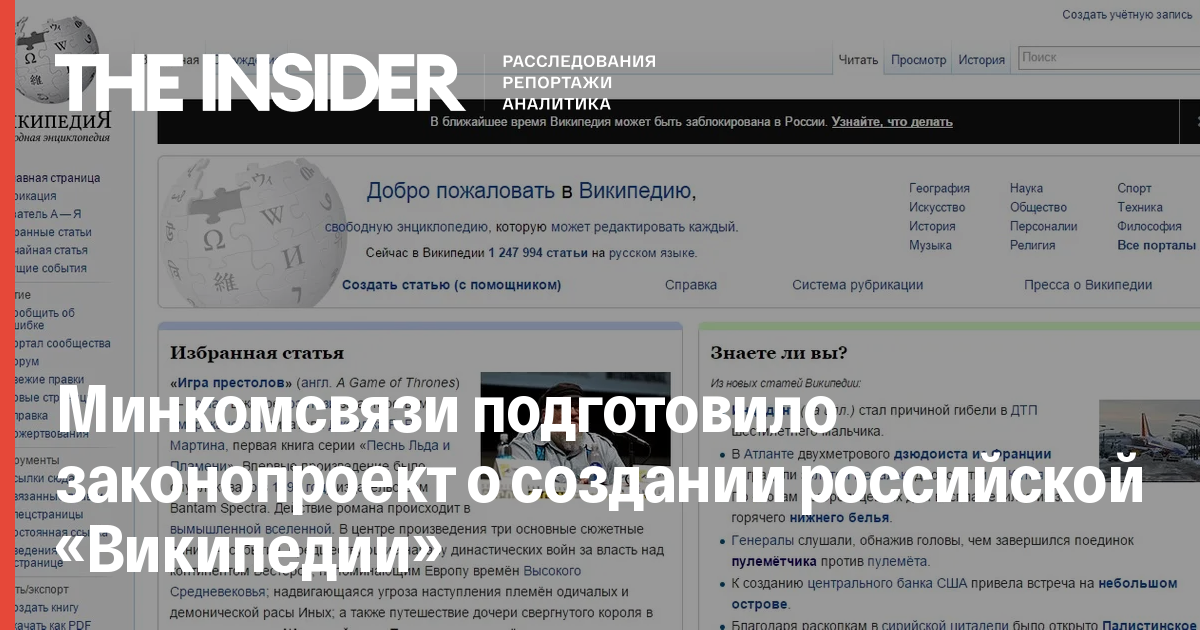 Минкомсвязи подготовило законопроект о создании российской «Википедии»