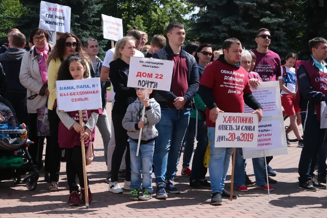 Инициаторами митинга выступили дольщики 20 и 22 домов ЖК «Пятницкие кварталы» Красногорского района из-за переноса сроков передачи квартир еще минимум на год. Митинг поддержали дольщики и жители остальных домов ЖК, а также дольщики других долгостроев Московской области – «Изумрудная долина», «Шервудский лес», «Дом у реки», «Лидер парк», «Солнечная система», «Дом на Вишневой, 31», «Новокосино-2», «Лобня Свободный проезд», ЖК «Бекасово» и других.