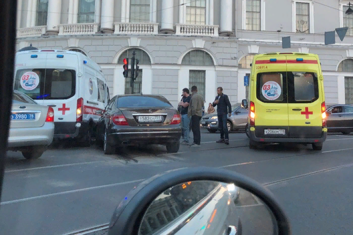 На Невском проспекте автомобиль врезался в машину скорой помощи. Пострадали два фельдшера