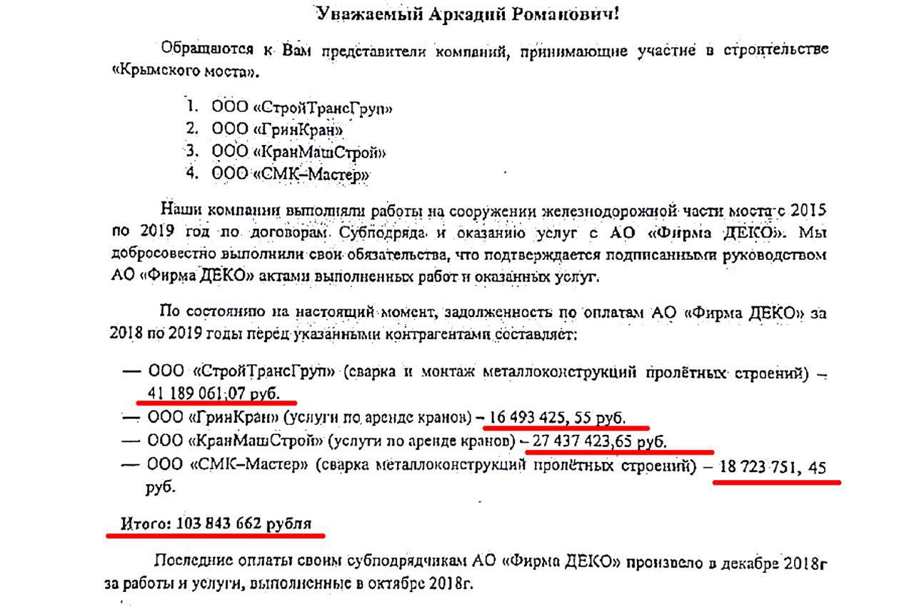 Не получив ответа у "СГМ-мост", в июне 2019 года субподрядчики отправили обращение к президенту, но тоже безрезультатно.