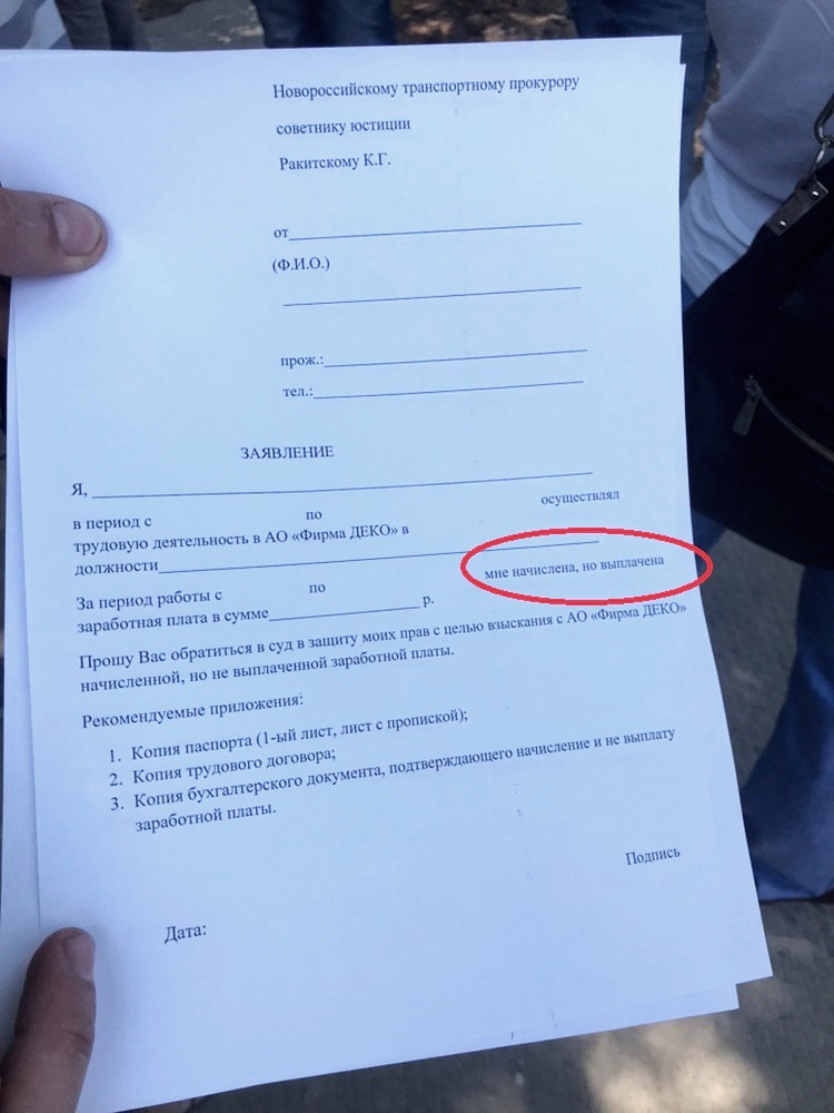 Через несколько секунд люди обнаружили, что в образце вместо "не выплачена заработная плата" написано "выплачена".