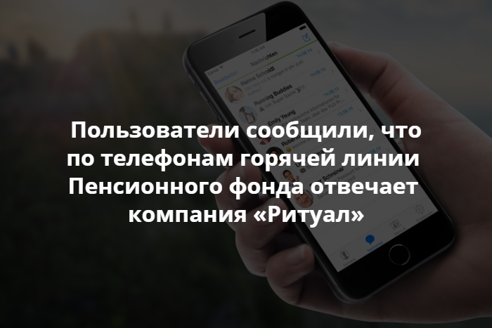 Жительница Москвы Лена Брандт сообщила в социальных сетях, что по горячей линии Пенсионного фонда отвечает компания «Ритуал», предоставляющая ритуальные услуги.