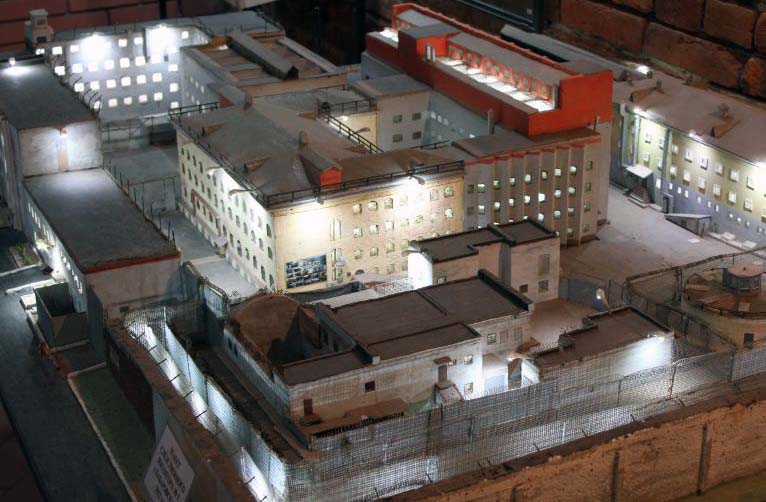 На боковом входе в здание висит табличка: «Музей». Начальство решило переоборудовать в музей помещение, куда раньше отправляли нарушивших режим подследственных. Из коридора, выложенного красным кирпичом, шесть дверей («Из таких низких дверей ты не выйдешь группой на коридор, не осуществишь захват заложников в лице сотрудников») ведут в карцеры. На нарах сидят пенопластовые заключенные.