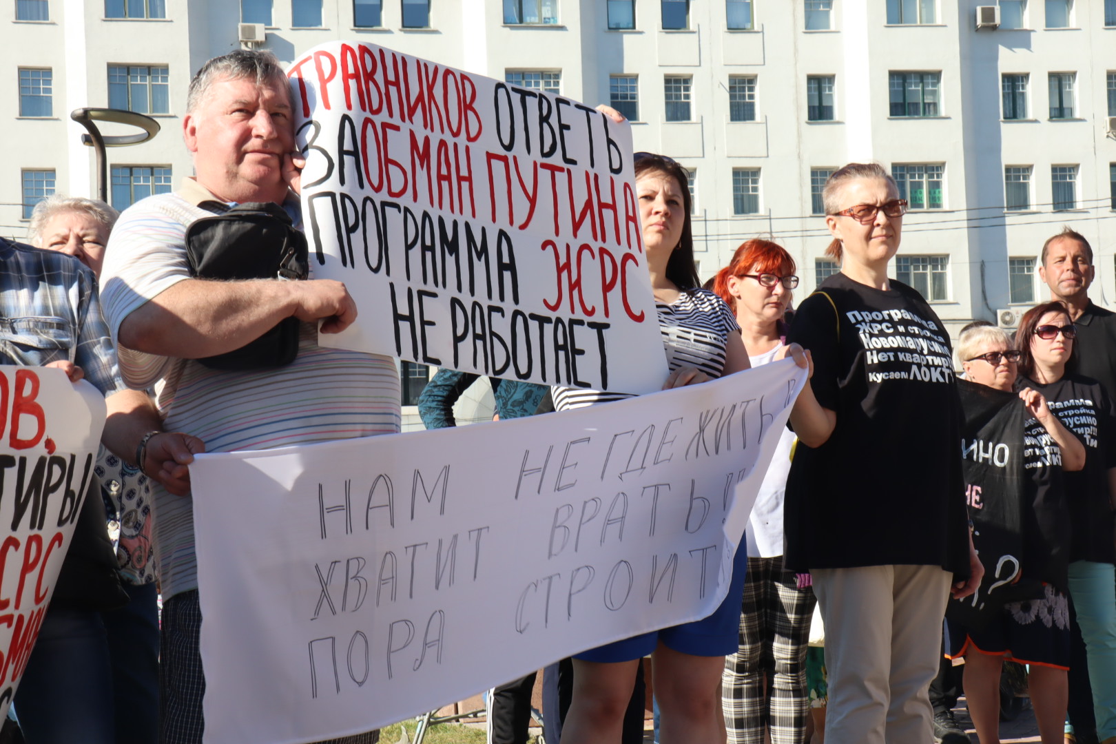 На митинге жители Новосибирска потребовали привлечь к ответственности чиновников регионального Минстроя, которые должны были контролировать соблюдение строительных технологий. Ранее дольщики жаловались в прокуратуру по поводу возможного нецелевого использования денег инвесторов, но серьезных нарушений проверка не выявила. Пикетчики заявили, что если власти не начнут с ними переговоры, то они присоединятся к общегородской голодовке обманутых инвесторов, которая намечена на август.