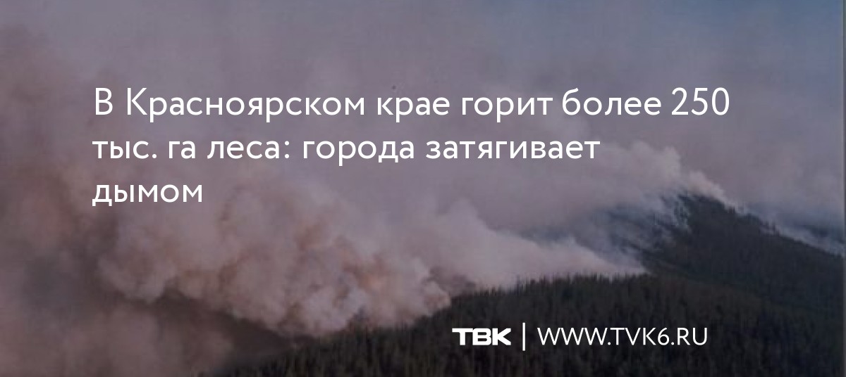 В Красноярском крае горит более 250 тыс. га леса: города затягивает дымом
