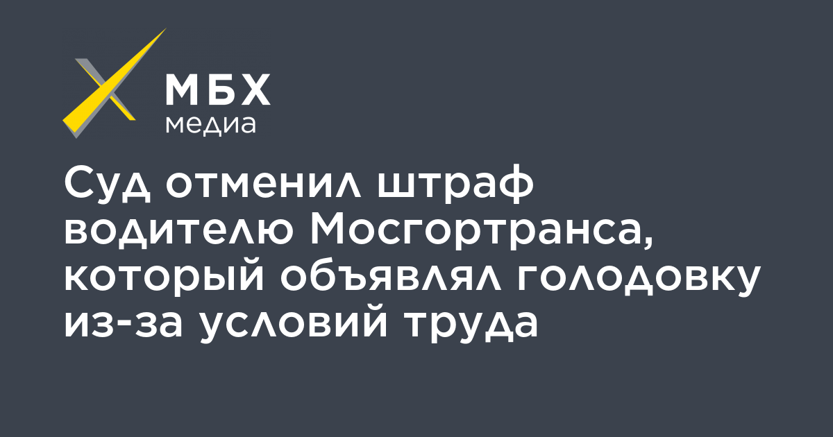 Мосгорсуд отменил штраф бывшему водителю Мосгортранса Юрию Елизарову за акцию протеста против нарушения прав и плохих условий труда. Об этом он сам рассказал «МБХ медиа».