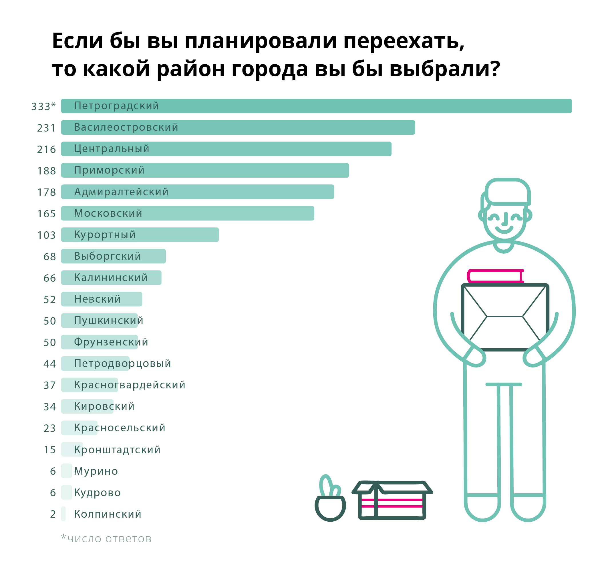 Участники опроса рассказали, куда в Петербурге готовы переехать и почему. Верхние строки в рейтинге заняли те же районы, которые положительно оценили их жители. Самым популярным стал Петроградский.