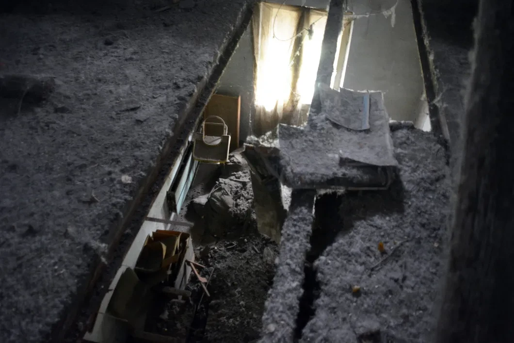 В другом двухэтажном доме потолок уже рухнул. Не выдержали перекрытия между крышей и вторым этажом. Деревянные балки обрушились прямо в квартиру. Правда, хозяева из нее съехали за несколько месяцев до ЧП.