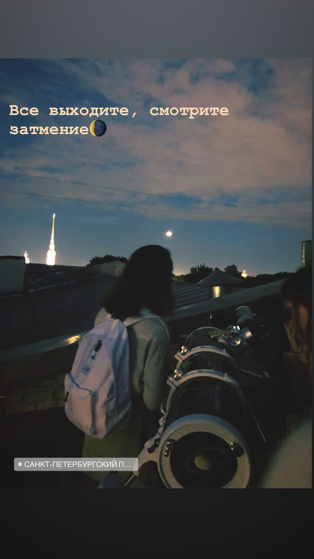 Несмотря на затянутое облаками небо и дождь, некоторые петербуржцы смогли сфотографировать затмение. Другие рассказали, что увидели его в телескоп.