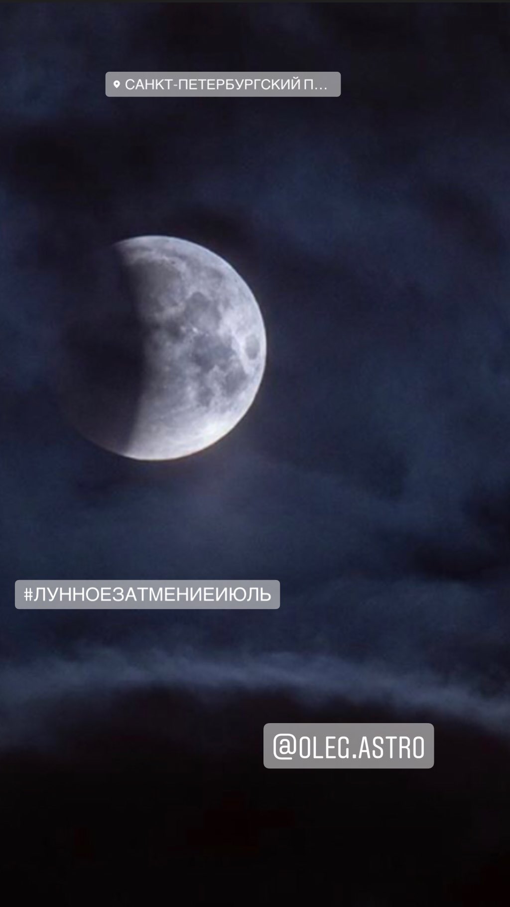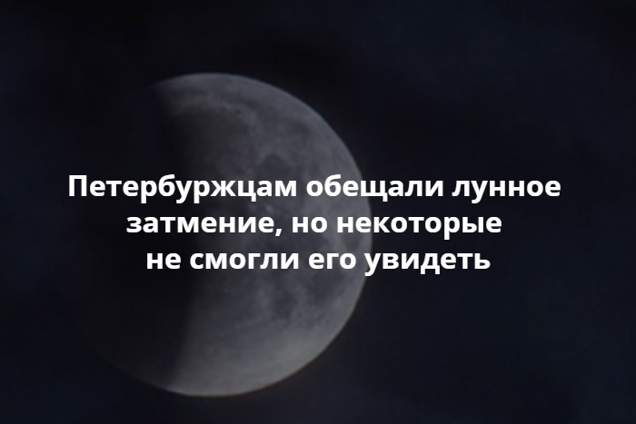 Вечером 16 июля в Петербурге и других городах России можно было увидеть частное лунное затмение. Посетители планетария рассказали, что наблюдениям помешала непогода.