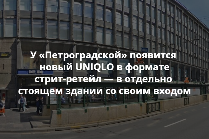 В ноябре 2019 года у станции метро «Петроградская» откроется двухэтажный магазин UNIQLO. Об этом «Бумаге» сообщили представители компании.
