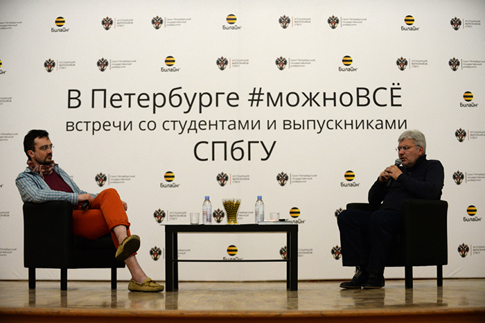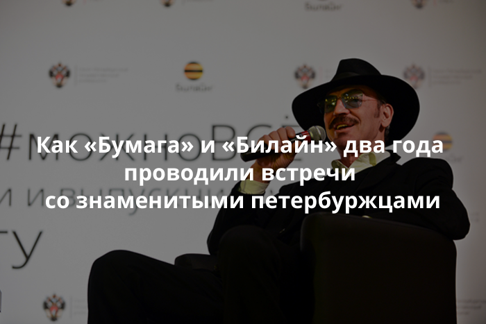 «В Петербурге можно всё» — это серия открытых интервью со знаменитыми петербуржцами, которые мы два года проводили вместе с «Билайн» и Ассоциацией выпускников СПбГУ. Мы делали прямые трансляции встреч в паблике «Бумаги», а после — публиковали расшифровки бесед.
