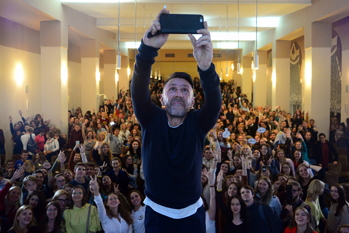 Во время проекта происходило много интересного. Например, к нам вдруг согласился прийти Сергей Шнуров (хотя этого никто не ждал). Он даже спустился в зал и сам давал микрофон студентам. Правда, музыкант делал всё, что его попросили не делать: матерился, курил и обсуждал политику.