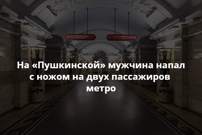 В ночь на 20 июля на станции «Пушкинская» мужчина напал с ножом на двух пассажиров метро, сообщает пресс-служба ГУ МВД по Петербургу и Ленобласти.