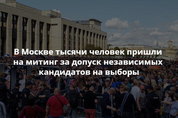 В Москве на митинг за допуск независимых кандидатов на выборы в Мосгордуму пришли более 20 тысяч человек