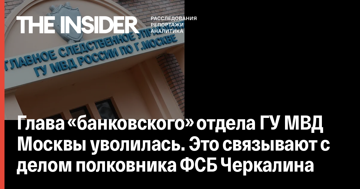 Глава «банковского» отдела ГУ МВД Москвы уволилась. Это связывают с делом полковника ФСБ Черкалина