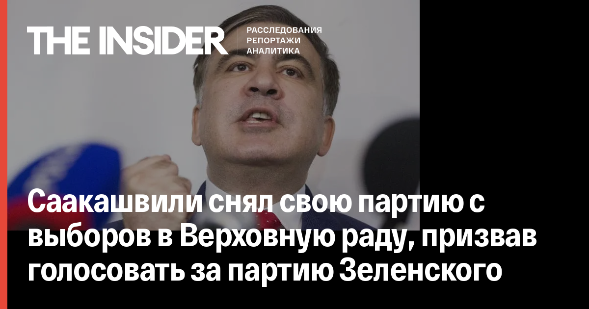 Михаила Саакашвили снял свою партию «Движение новых сил» с выборов в Верховную Раду и призвал голосовать за партию президента Украины Владимира Зеленского.