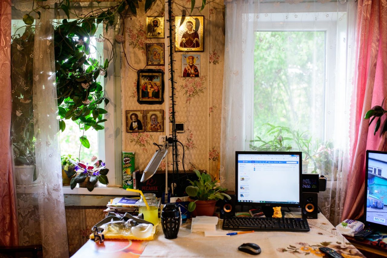 Рабочее место АлексеяФото: Кристина Бражникова для ТД «Мы и в больницах лежали. И разных врачей сменили. Ведь нам препаратов нормальных не могли прописать. Боли были такие сильные, что спали по полчаса в сутки. Коленные суставы в жутком состоянии. Так вот, пили лекарства, потом он присаживался несколько раз (тогда еще мог это делать), и минут на 30 – 40 отпускало. А потом все заново, по кругу. Только с первой группой инвалидности прописали средства, которые уняли боль».