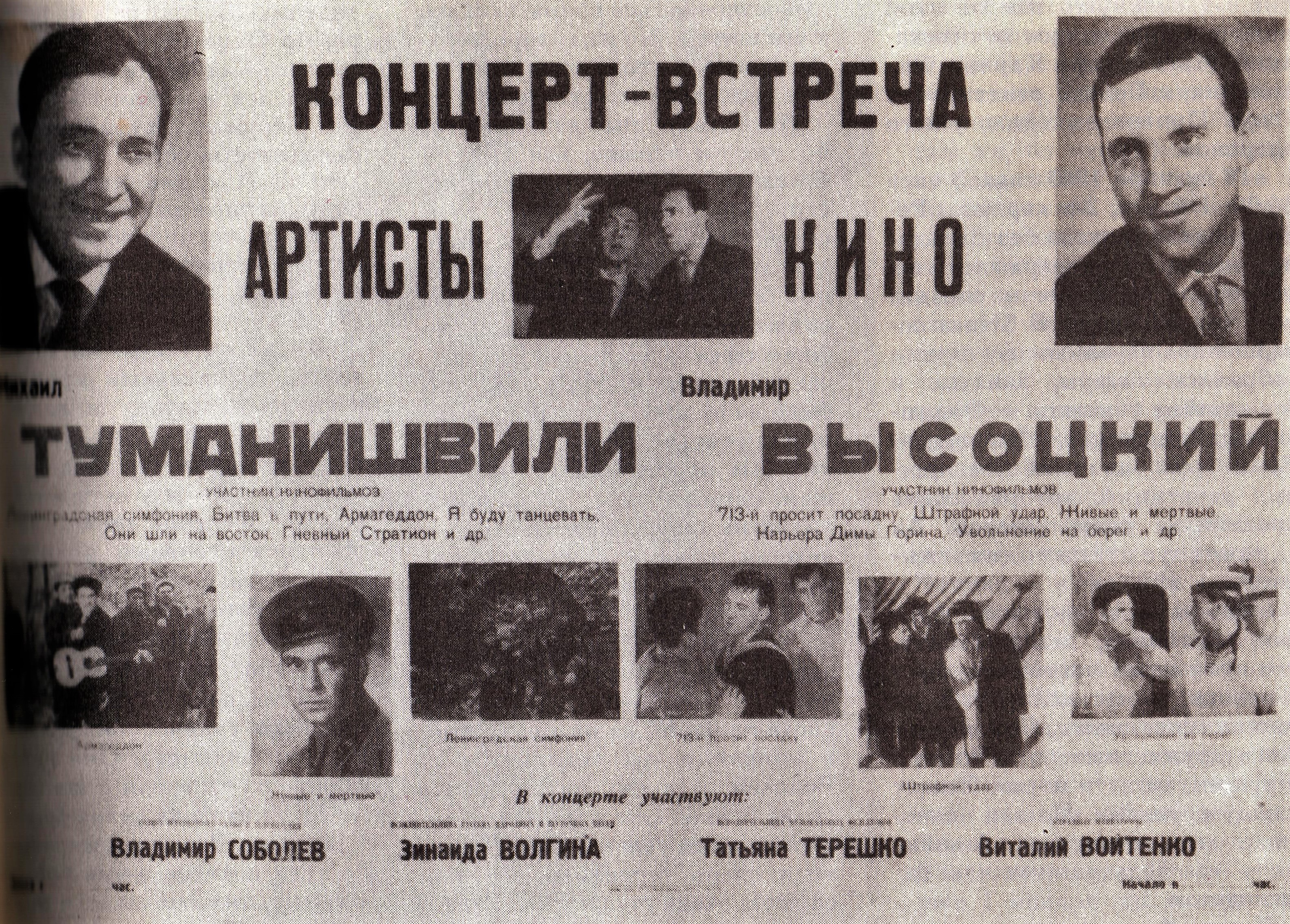 Афиша выступлений М.И. Туманишвили и В.С. Высоцкого на Алтае. Январь 1964 г