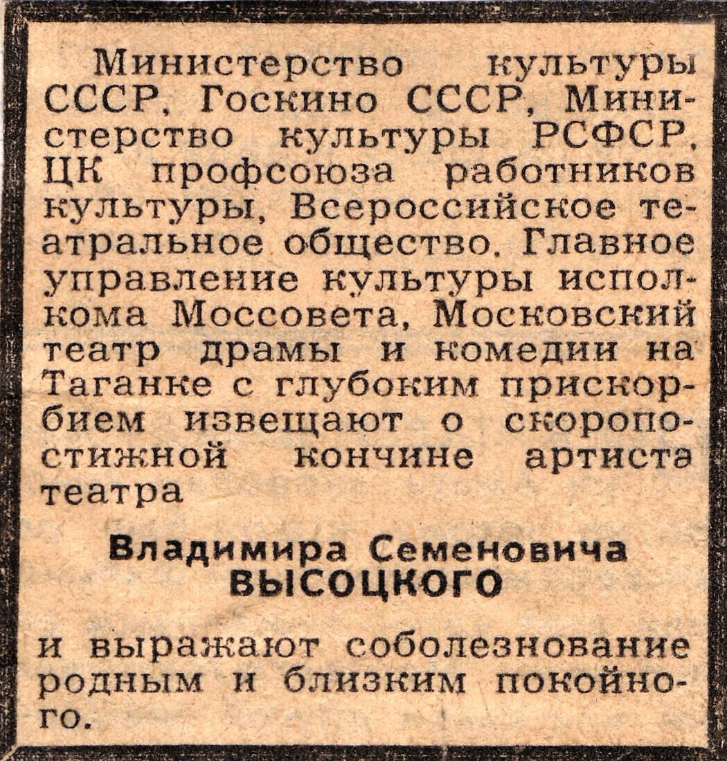 Некролог в газете "Советская культура". 29 июля 1980 г.