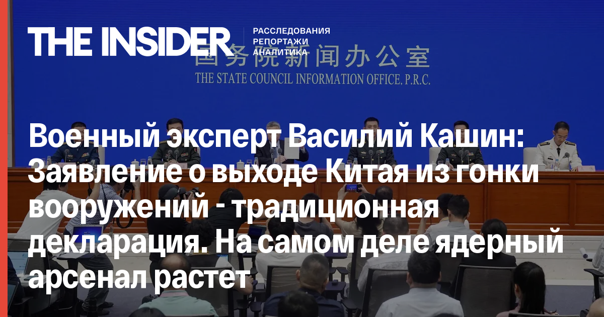Военный эксперт Василий Кашин: Заявление о выходе Китая из гонки вооружений - традиционная декларация. На самом деле ядерный арсенал растет