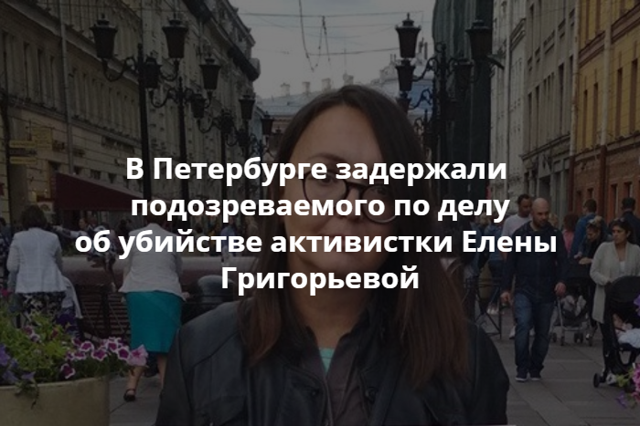 В Петербурге задержали подозреваемого по делу об убийстве гражданской активистки Елены Григорьевой, тело которой обнаружили 21 июля. Об этом сообщает СК.