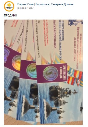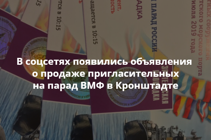 Петербуржцы в социальных сетях публикуют объявления о продаже пригласительных билетов на парад ВМФ в Кронштадте, который пройдет 28 июля.