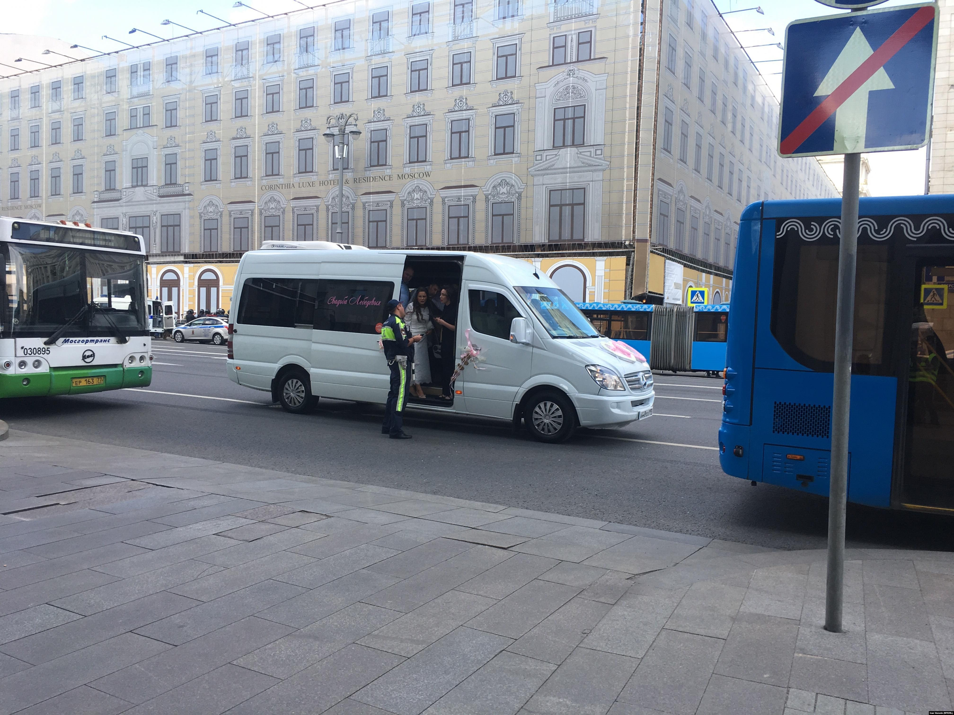 В центре Москвы несколько сотен сотрудников полиции и Росгвардии. Пешеходная зона на Тверской улице со стороны мэрии перекрыта, закрыты магазины и рестораны. В один из них полицейские не пустили жениха и невесту с гостями, развернув их автобус.