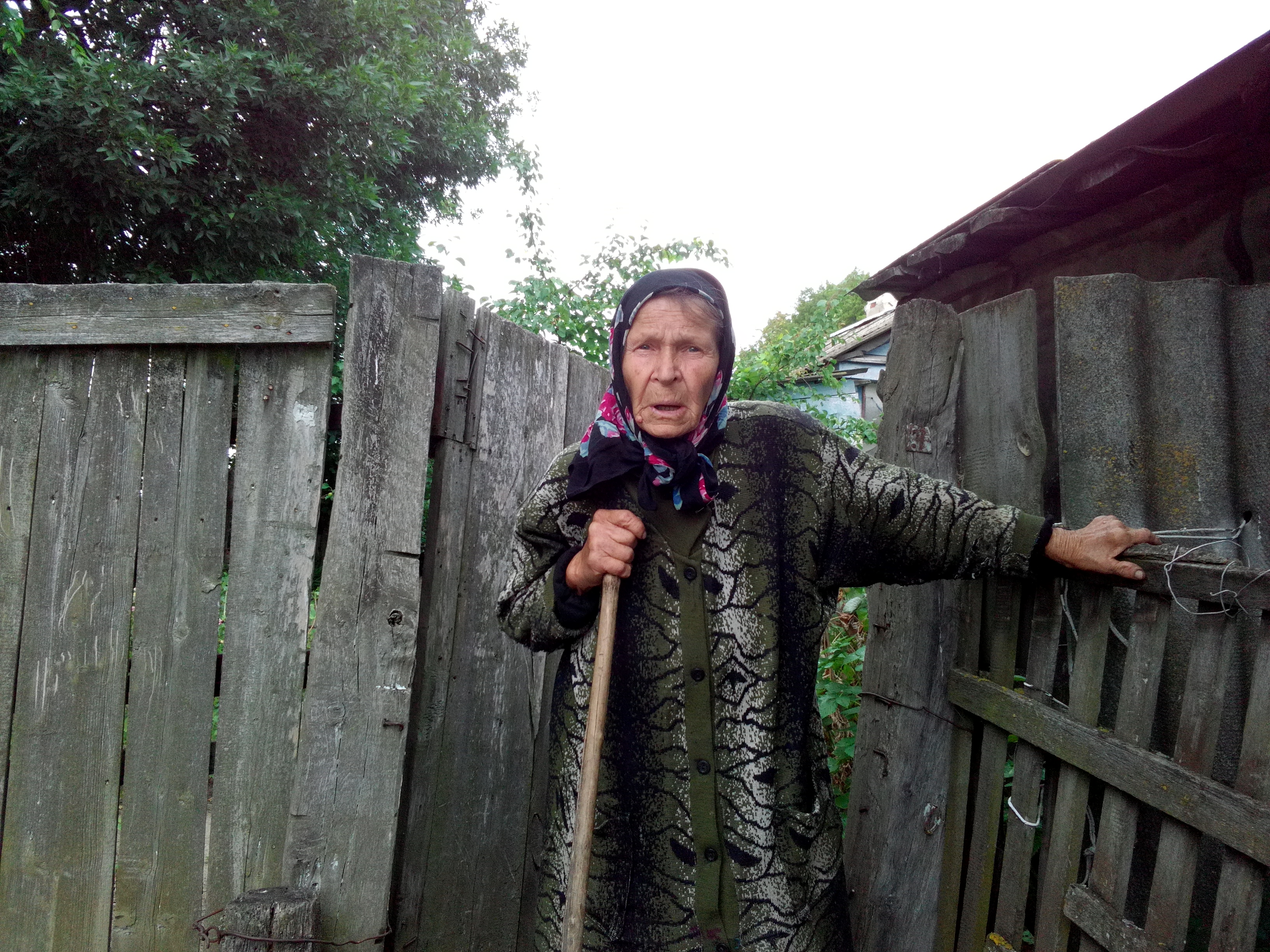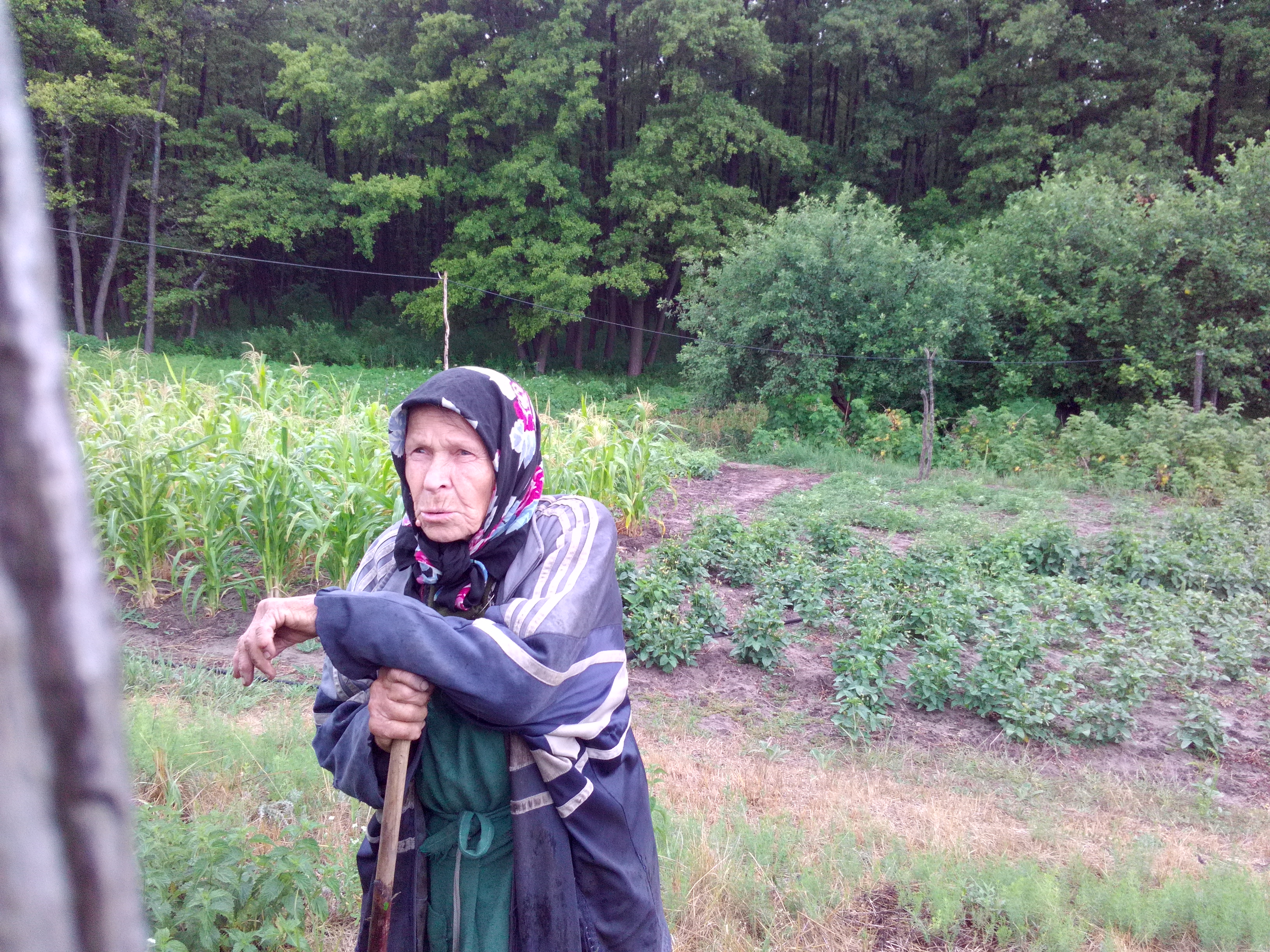 Несколько раз мы пытались найти проход к дому – не получалось. И тут вдалеке в огороде, среди посадок кукурузы показалась согнутая женщина. Она медленно шла, опираясь на костыль, с ведром, набитым зеленой травой, в руках.