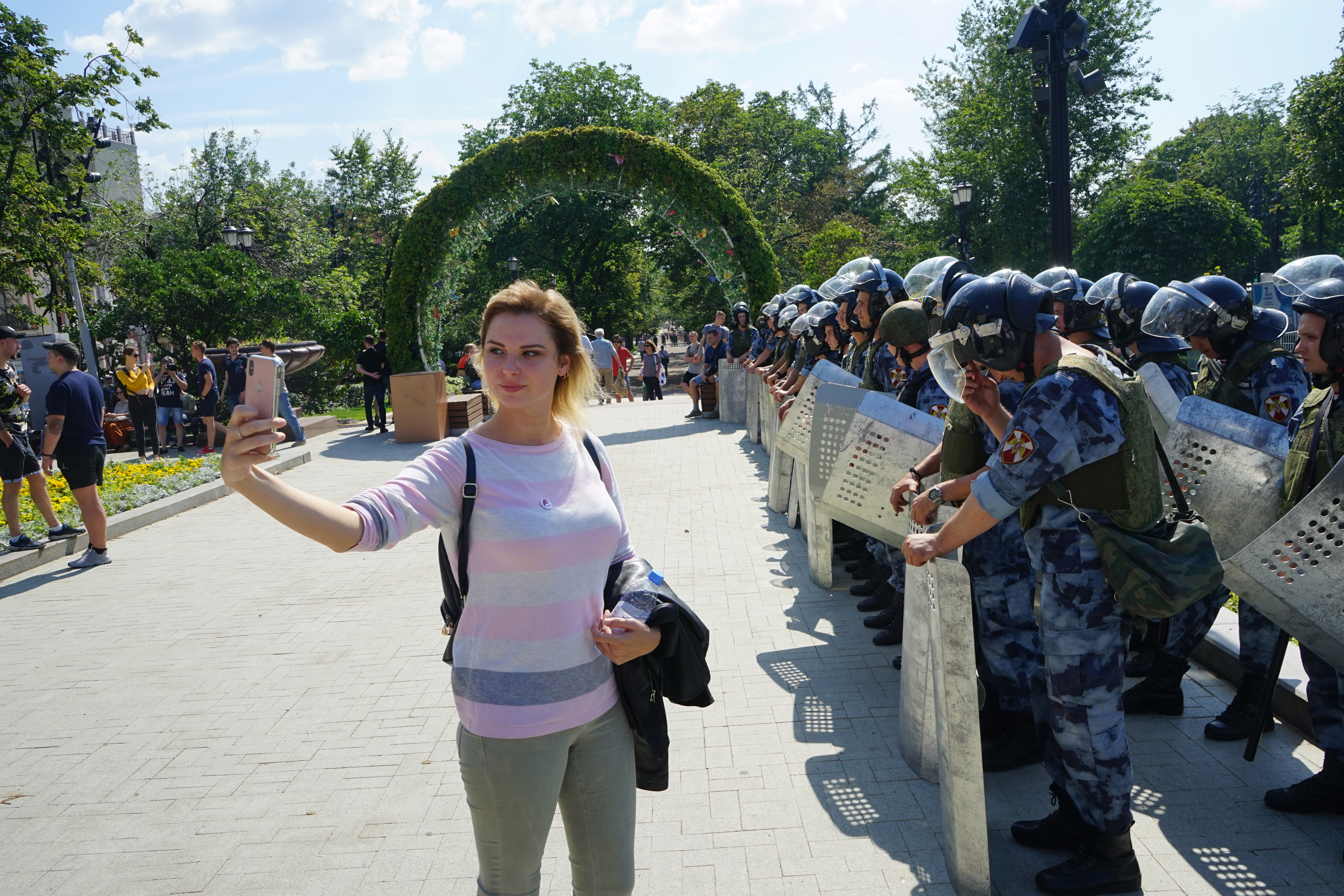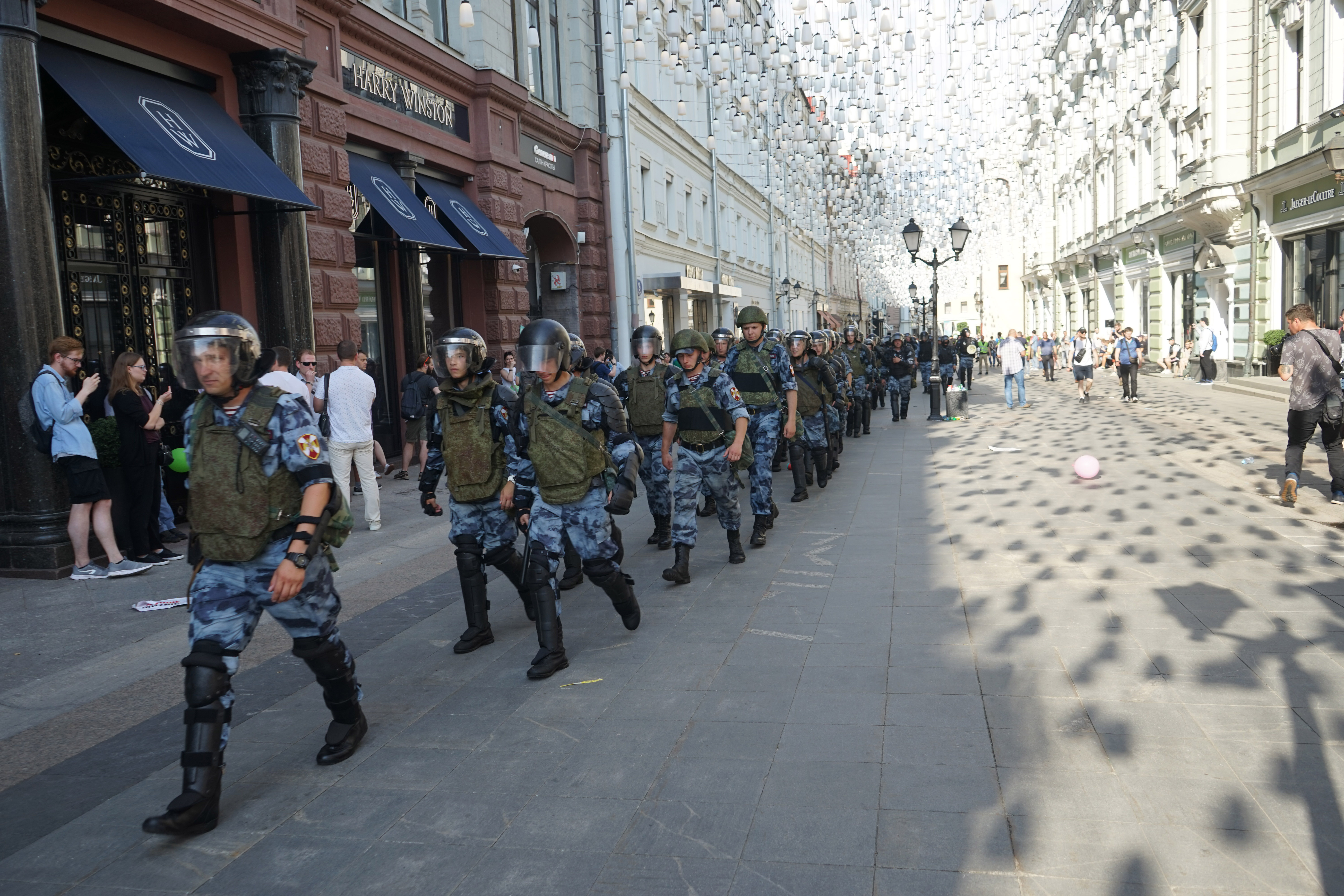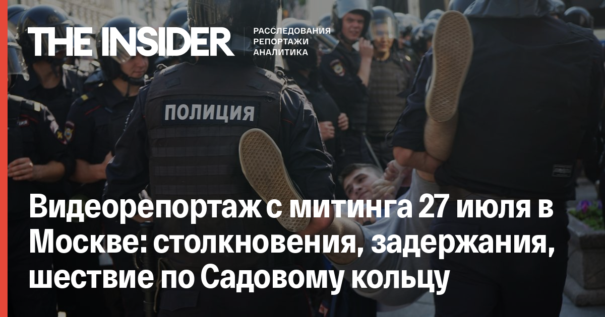 The Insider предлагает вашему вниманию видео-репортаж с некоторыми наиболее яркими эпизодами столкновений полиции и протестующих в Москве 27 июля, в ходе акции в поддержку независимых кандидатов в Мосгордуму. Всего было задержано рекордное число (более 1300 человек), из них не менее 150 остались в отделении на ночь. Несмотря на мирный характер протеста, полиция применяла резиновые дубинки, в том числе против женщин, досталось и журналистам.