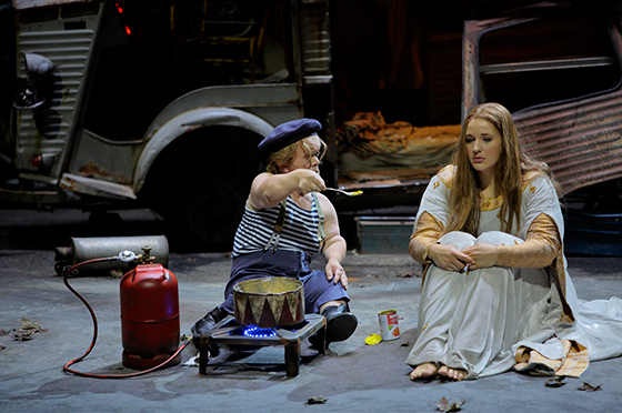 Третий акт подчеркнуто не согласуется с эмоциональным настроем первых двух: он крайне пессимистичен. И гораздо более трагичен, чем финал вагнеровский: Елизавета (прекрасная светоносная сопрано Лиз Дэвидсен) умирает, не надеясь ни на божественную благодать, ни на воссоединение с любимым. Умирает в грязном микроавтобусе, среди отбросов общества, в отчаянии отдавшись перед тем нелюбимому, но любящему ее Вольфраму (Маркус Айхе). Бог покинул этот мир, и ощущение богооставленности — самый страшный момент во всем спектакле.