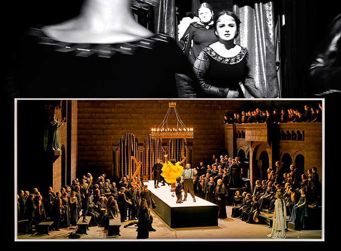 Но не таков Тобиас Кратцер — «царапина» (так переводится его фамилия с немецкого). Кратцер расцарапал глянцевую поверхность официозного Байройта довольно основательно, показав, что ни в грош не ставит ту свинцовую серьезность, с которой здесь относятся к традициям, сакральному ореолу места и самому Вагнеру, почитаемому как божество. Но отнюдь не стал пионером в этом вопросе: первым, кто посмел вволю поиронизировать над Байройтом, был Франк Касторф, поставивший здесь в 2013 году свое удивительное и странное «Кольцо». И, кстати, Кратцер многое взял у Касторфа: прежде всего — прием параллельного действия, когда зритель одновременно видит и происходящее на сцене, и то, что происходит за сценой или вовсе в другом месте. Телевизионные камеры почти постоянно работали в режиме live, видеоистории совмещались со сценическим действием, и это сообщало зрелищу не только увлекательность, но и небывалую интенсивность.