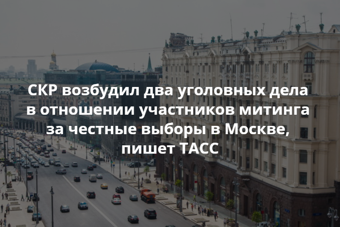 СКР возбудил два уголовных дела в отношении участников митинга за честные выборы в Москве, пишет ТАСС