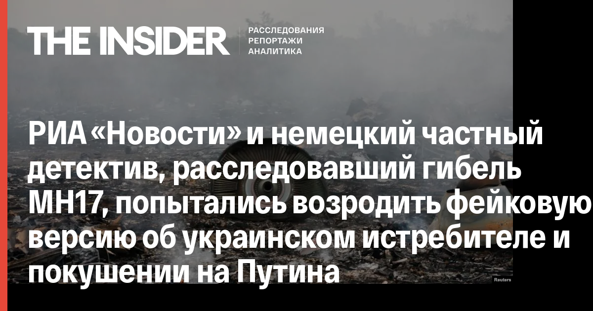 РИА «Новости» и немецкий частный детектив, расследовавший гибель MH17, попытались возродить фейковую версию об украинском истребителе и покушении на Путина