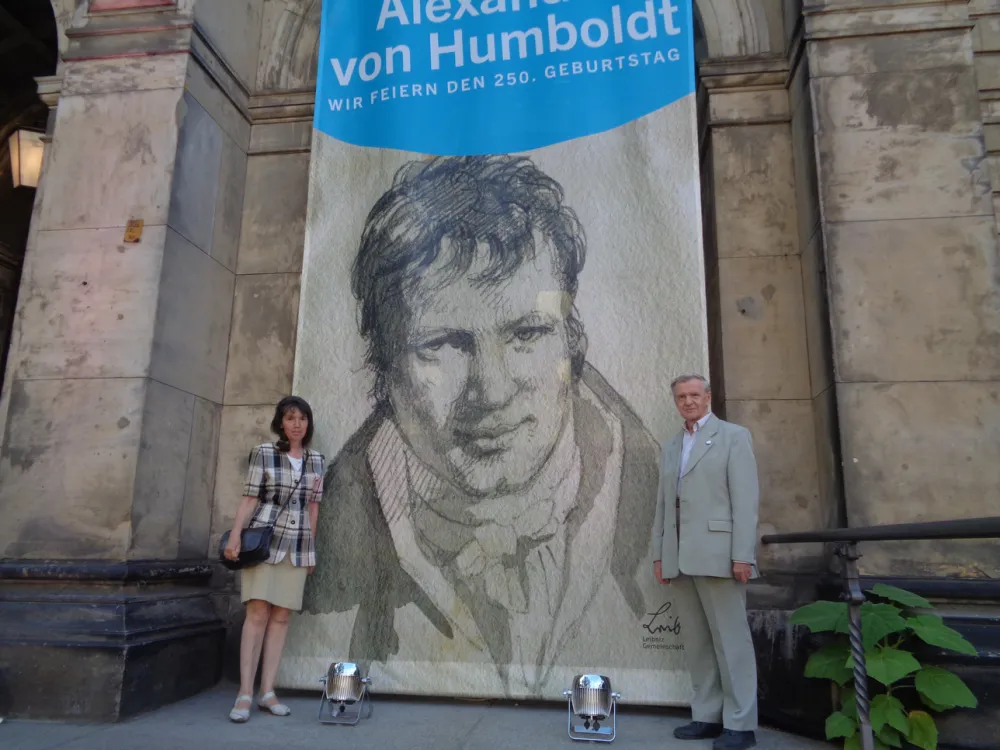 Нам посчастливилось наблюдать июньское празднование 250-летнего юбилея Александра Гумбольдта в двух городах Германии: Фрайберге (Саксония) и Берлине. Эти мероприятия были связаны с деятельностью немецкого натуралиста преимущественно в области геологии. Приглашению на торжества предшествовало наше участие в большой российско-немецкой историко-научной экспедиции по маршруту А. Гумбольдта, прошедшей по территории Западной Сибири, Алтая и Восточного Казахстана.