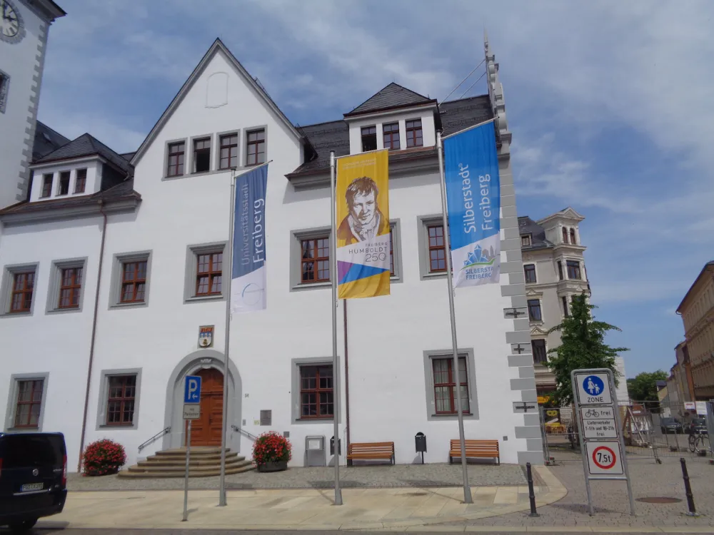 Было приятно пройтись по тихим уютным улочкам этого небольшого университетского городка, история которого началась в середине XII века. До нашего времени сохранились здания XVI столетия. Жизнь, как и раньше, сосредоточена вокруг горного дела. Места, связанные с пребыванием Александра Гумбольдта, отмечены памятными табличками. В самом центре города огорожен вход в шахту, куда, по всей вероятности, спускался этот неутомимый исследователь.
