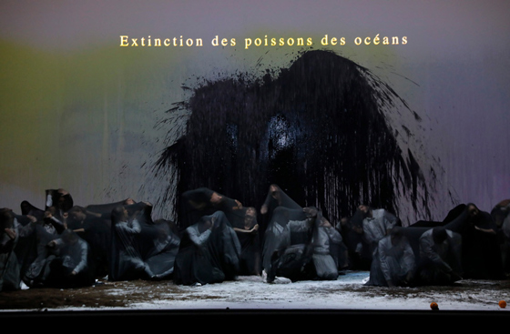 Это реквием по великим потерям — в природе, в животном мире, в архитектуре, в литературе, в мысли и даже в этике. Имена утрат мемориальными строками загораются на заднике, составляя заявленный в начале «Атлас великих потерь» — своего рода энциклопедию или архив, чья нарочитая выборочность избавляет от этической догматичности. Эти вспышки ушедших имен структурируют спектакль как метроном, становясь все ближе к нам по времени и все абстрактнее по содержанию, нагоняя и накрывая зрителя, приближаясь к его жизни, к его коже. Кастеллуччи, впрочем, точен со словами — его атлас не становится мемориальной доской и путем в забвение. Он перечисляет «угасания» (extinctions), которые продолжают жить в нашей памяти, — будь то христианство, голод, даже Александрийская библиотека. Атлас обрывается на дате спектакля, оставляя след самого перечня угасаний, который продолжится в другой день следующими потерями. И оставляя надежду на продолжение жизни.