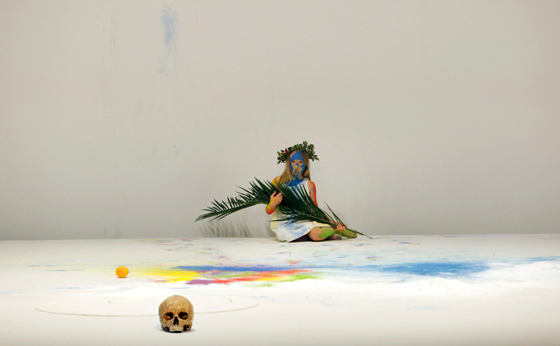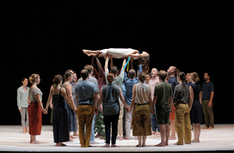 © Pascal Victor / ArtComPress Кастеллуччи превратил мессу мертвых в праздник возрождения, где конечность существования человека и культуры перестает быть трагедией и становится поводом для праздника. В визуальном и концептуальном рядах использованы ритуальные и фольклорные элементы, которые заданы цикличным временем, которые преодолевают эсхатологическое сознание, которые празднуют смерть. Они остаются узнаваемыми и абстрактными одновременно и при этом — акцентированно современными. Костюмы, то цветные, то бесцветные, отсылают к чему-то балканскому; танец с довольно условной национальной привязкой сохраняет хаос и риск, которые обеспечивают обаяние любого танца; жертва — то ли христианская, то ли языческая, и она же становится козлом отпущения — в саже, меде, перьях, ярких красках, шкуре и с рогами.