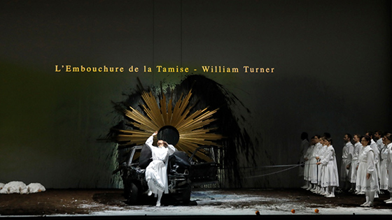 © Pascal Victor / ArtComPress Спектакль развивается как серия картин, продолжая номерное строение моцартовской партитуры. В нем важен визуальный ряд, где живописное использование цвета оттеняет циклические переходы между тьмой и светом. Красота для Кастеллуччи тесно связана со смертью — она становится красотой именно потому, что конечна, и именно в тот момент, когда она умирает. И именно красота соединяет — но не разрешает — напряжение между вечным и бесконечным, которым занимается Кастеллуччи в этой постановке.
