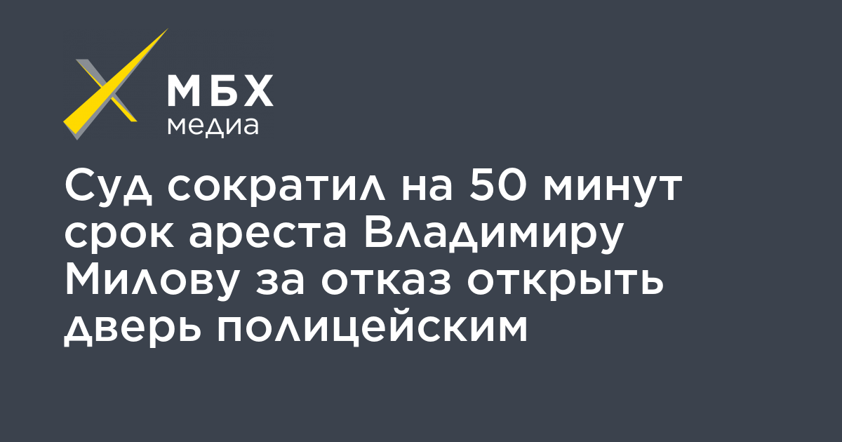 Мосгорсуд оставил в силе 15-дневный арест ведущего YouTube-канала «Навальный Live» Владимира Милова за отказ отрыть полицейским дверь в студию, сократив его на 50 минут. Об этом «МБХ медиа» сообщила адвокат Валентина Фролова, сотрудничающая с «Апологией протеста».