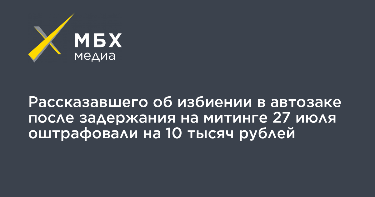 Рассказавшего об избиении в автозаке после задержания на митинге 27 июля оштрафовали на 10 тысяч рублей