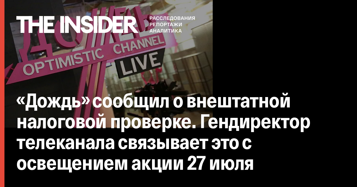 «Дождь» сообщил о внештатной налоговой проверке. Гендиректор телеканала связывает это с освещением акции 27 июля