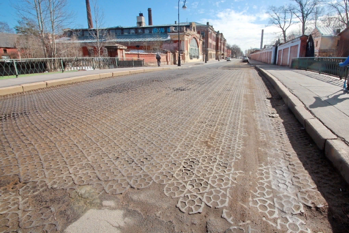 На Пеньковом мосту в Кронштадте положили асфальт вместо чугунных шашек, служивших местной достопримечательностью