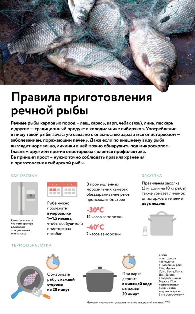 «Пристальное исследование промысловых видов из семейства карповых было начато по той причине, что у жителей Томской области очень высокая заболеваемость описторхозом, — рассказала завкафедры зоологии биологического института ТГУ Анастасия Симакова. — Единственный путь заражения — рыба, которая традиционно входит в рацион питания сибиряков. Мы начали анализировать ситуацию в районах, посмотрели пять промысловых видов и уклейку, которая является вселенцем и объектом любительского лова, а также пескаря и верховку. Среди исследованных особей свободными от инвазии оказались караси, пескари и верховка».