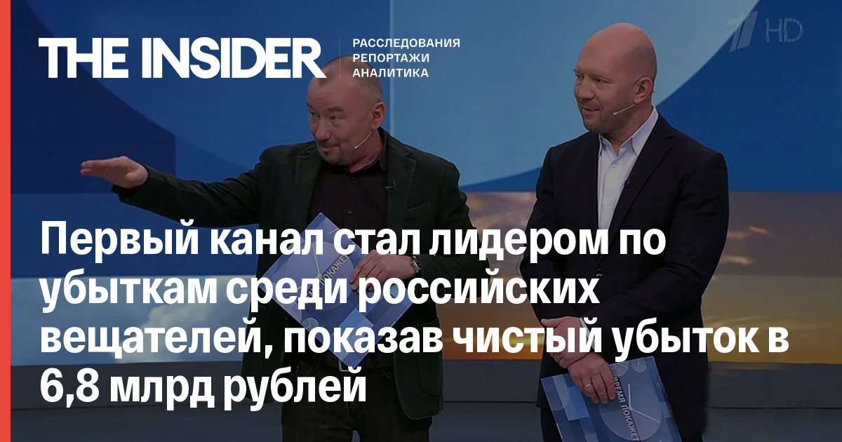 Первый канал стал лидером по убыткам среди российских вещателей, показав чистый убыток в 6,8 млрд рублей