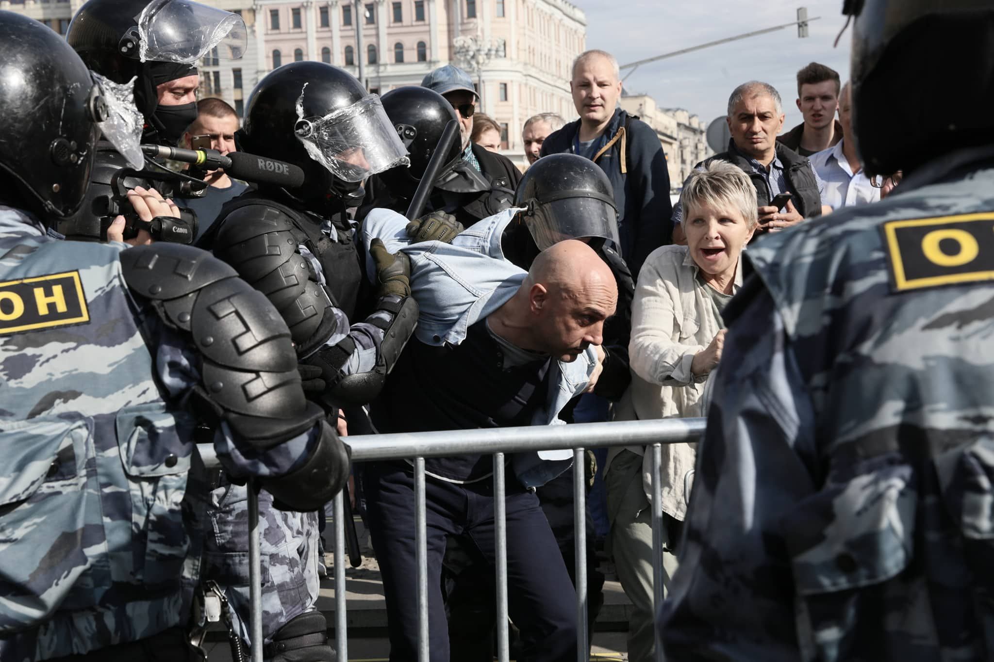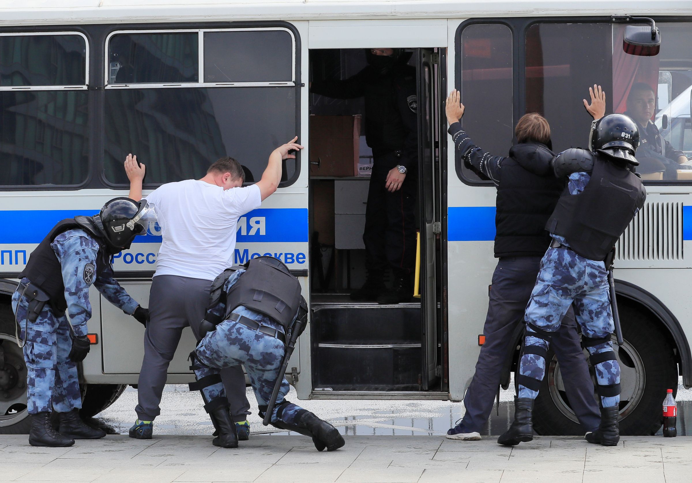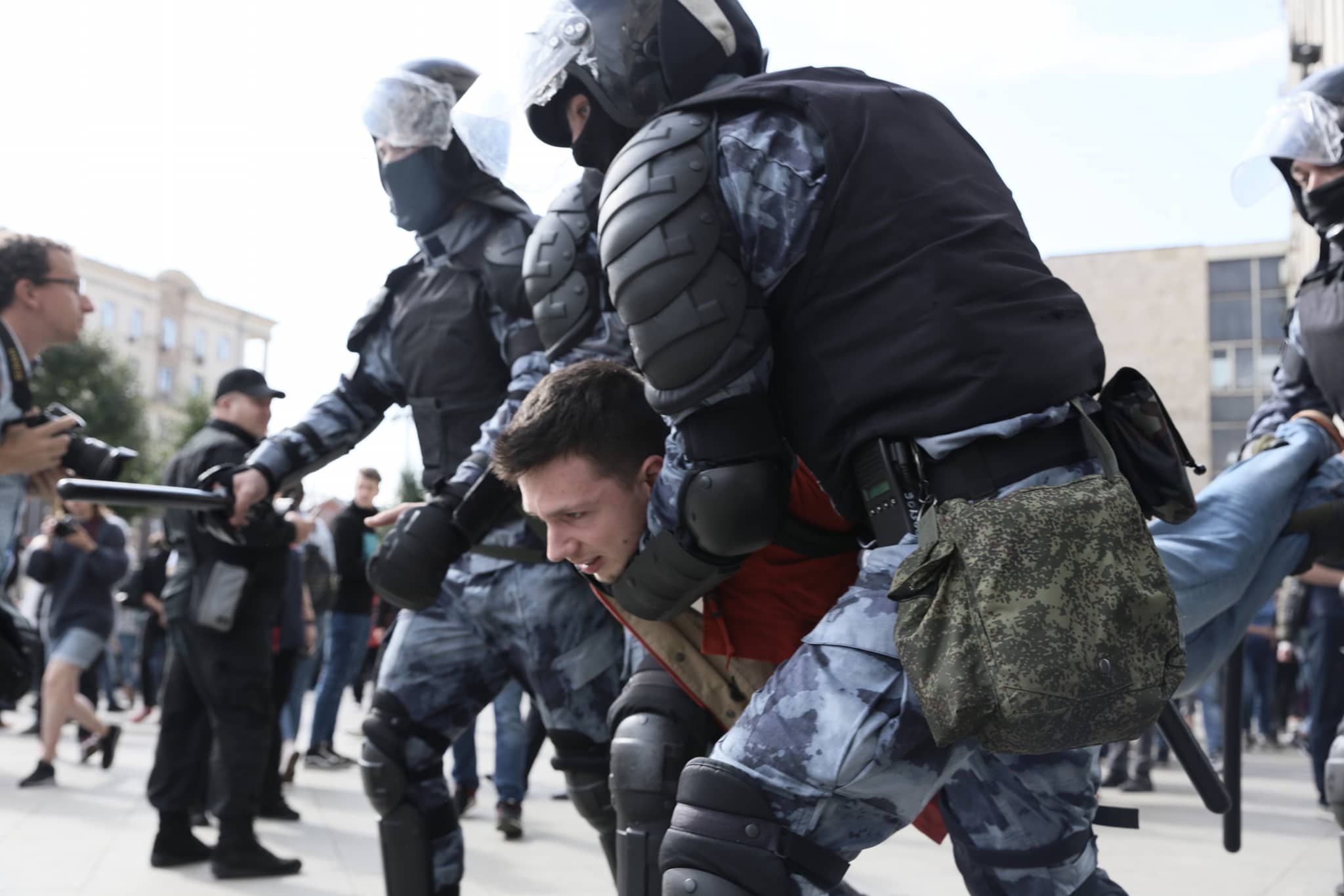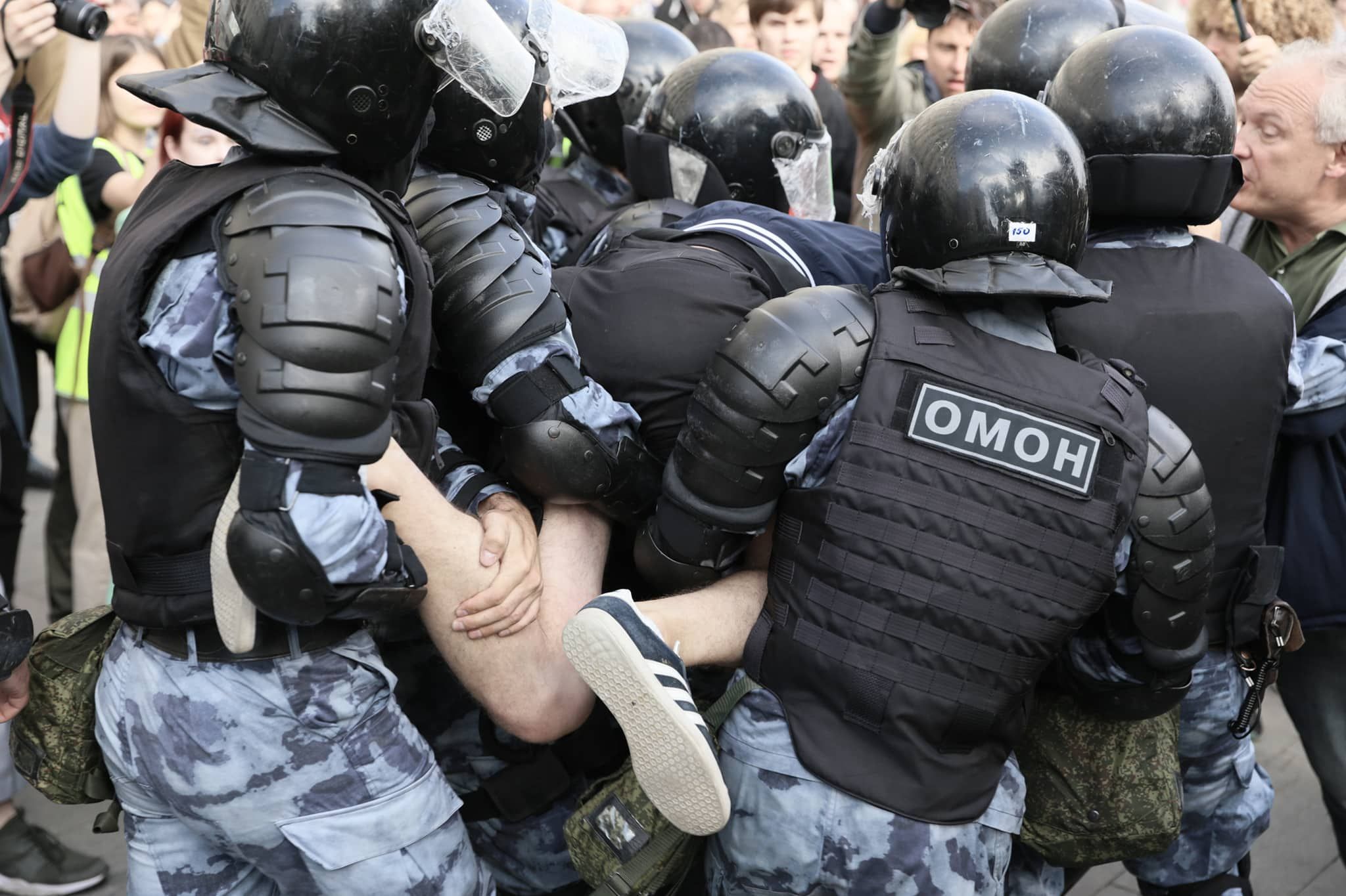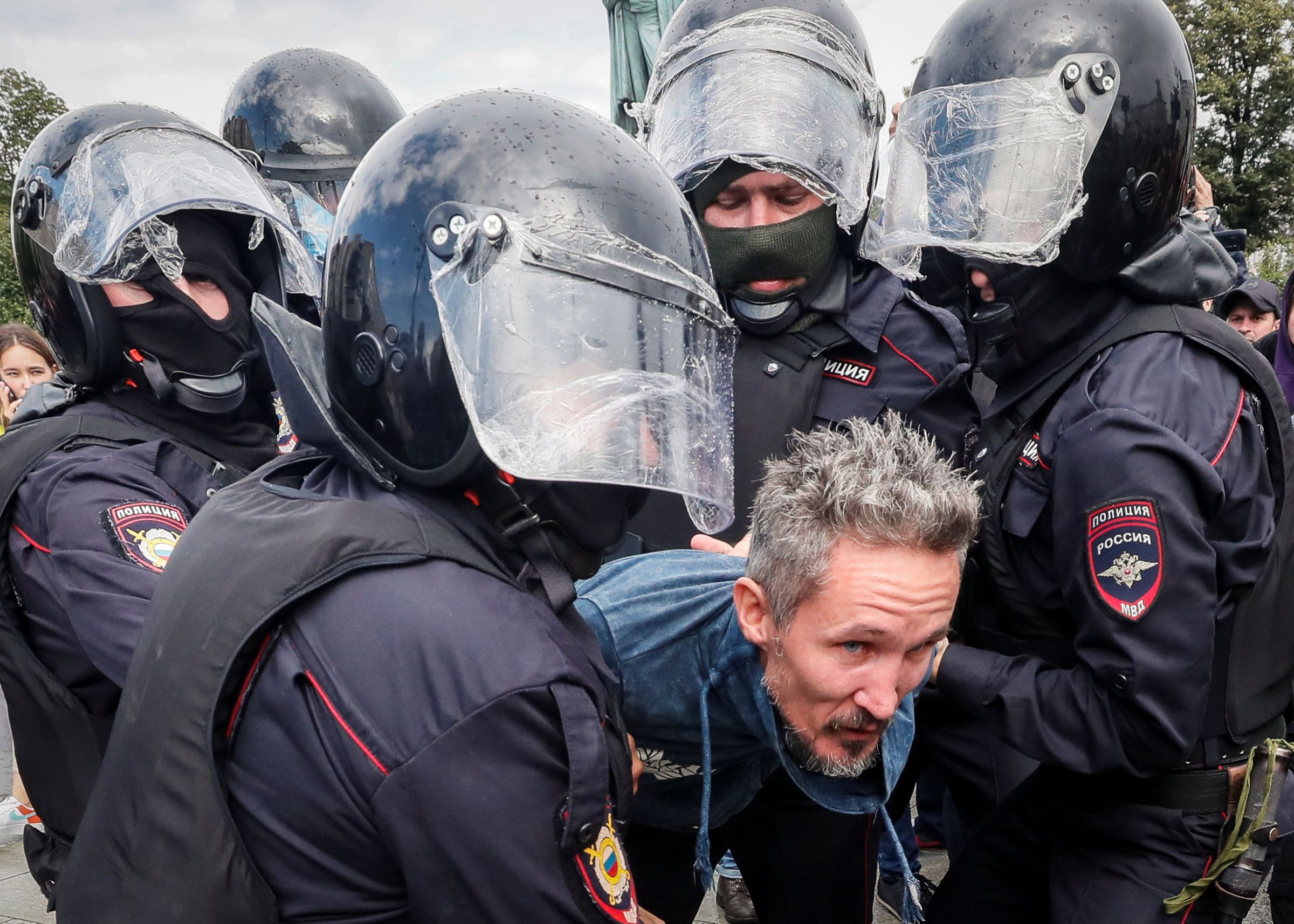 On August 3, the latest in a series of protests for fair elections took place in Moscow, with protesters demanding that opposition candidates be freed from jail and permitted to run for Moscow City Duma seats. The demonstration’s organizers called on Moscow residents to march en masse along the city’s Boulevard Ring. Most of the protesters gathered on Trubnaya Square and Pushkin Square, where police and National Guard troops immediately began to arrest them in large numbers. At least 800 people were violently forced into police vans and taken into custody. Preliminary reports indicate that more than 10 of those arrested were also injured. Here’s what the protest looked like on the ground.