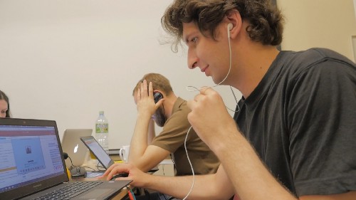 В час дня в субботу, 3 августа, в штабе «ОВД-Инфо» немноголюдно. Уже собралось около 17 волонтеров, они тихонько обсуждают, как лучше разбавлять кофейный концентрат из пятилитровой канистры, кому не хватает ноутбука с работающим микрофоном, как отполированы каски стоящих у метро силовиков и почему сегодня ожидается меньше задержаний, чем неделю назад. Между столами снуют вездесущие техники. Их задача — обеспечить бесперебойную связь всем отделам, которые сидят в одной большой комнате.