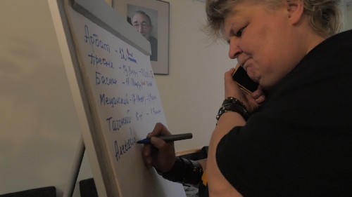 Алла Фролова (фото от 05.09.2018)Фото: предоставлено ОВД-Инфо Фразу «Сейчас все будет» Алла повторяет минимум раз в минуту. Телефон постоянно на зарядке, иначе выключается. Гарнитура в ушах — и сложно уследить, когда разговор с коллегами перетекает в разговор по телефону. Лист флипчарта постепенно заполняется мелкими черными буквами. Порядковый номер, ОВД, количество задержанных, имя выехавшего адвоката (от «ОВД-Инфо» или от других дружественных правозащитных проектов). Чаще — имена двух адвокатов. Много несовершеннолетних задержанных, которым нужен отдельный адвокат.